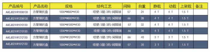 四向三腿——CM深槽板間隔鋪面 技術參數說明: 產品編號: AATJD4ⅢC1212150 產品名稱: CM面板川字鋼托盤 產品規格: 1200*1200*150 產品自重: 34kg 防銹工藝: 靜電沙紋噴塑 產品靜載: 3000KG(均勻載重) 產品動載: 2000KG(均勻載重) 產品上架: 1200KG(均勻載重) 主要用途: 配合穿梭貨架、立體倉庫、車間周轉、物流倉儲