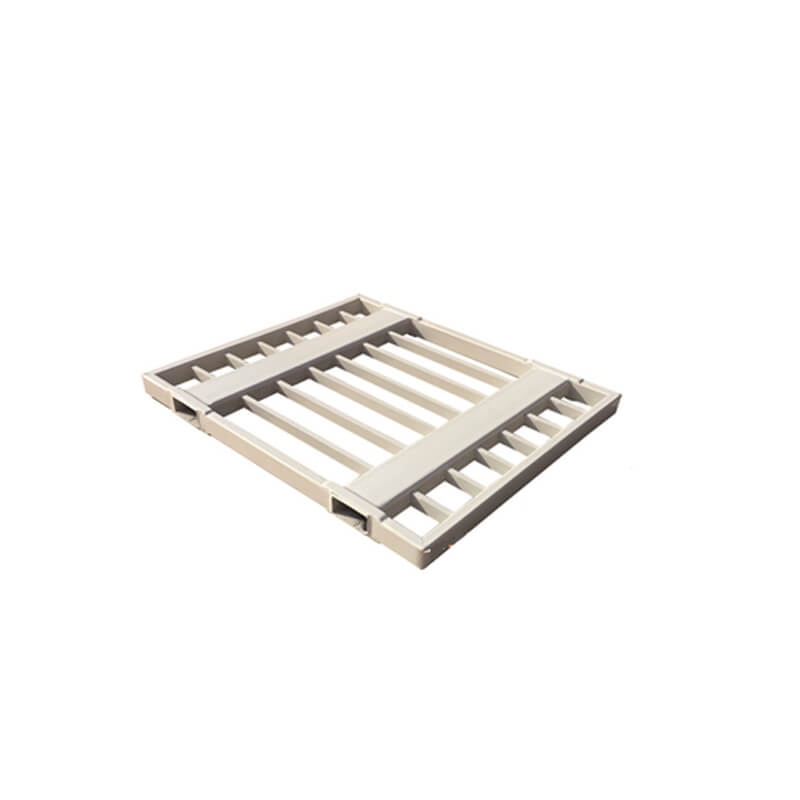 BA型小圓角雙凹面鋼托盤 產品用途:主要為袋裝的軟包裝大批量物品存儲和周轉。改變老式四個尖角焊接,采用圓角工藝,主要防止麻袋在放置時不容易刮破。